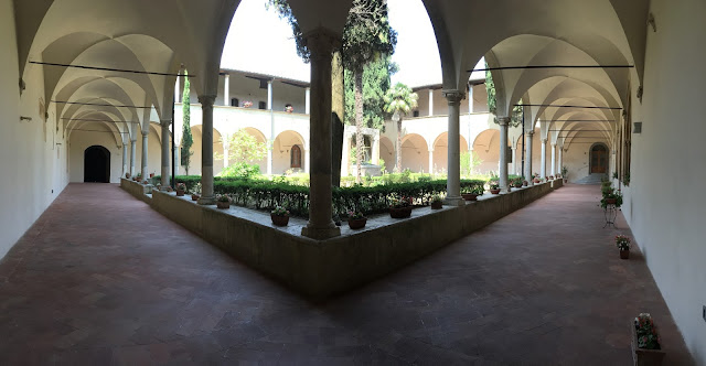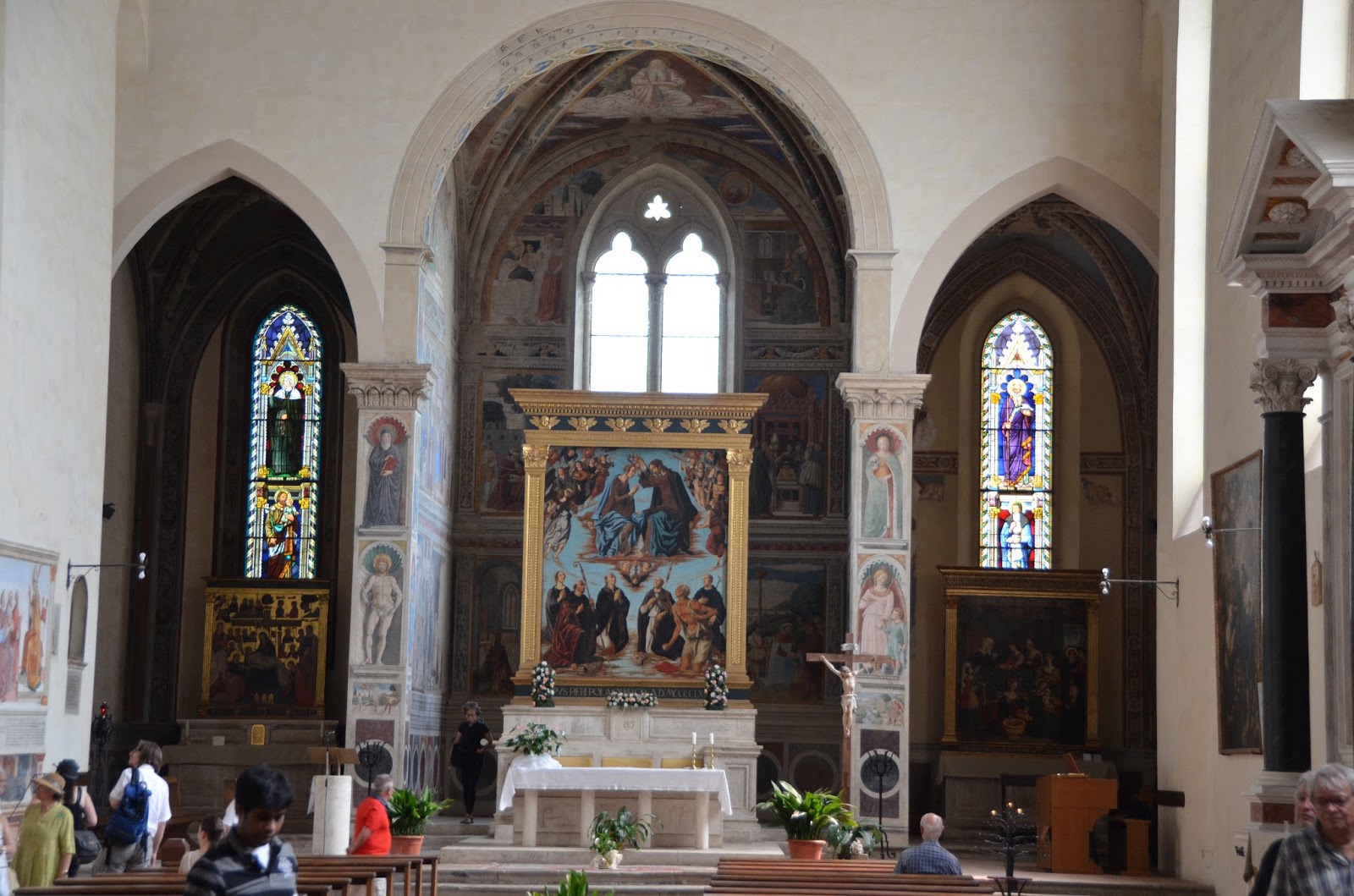 Once we parked and entered the medieval wall of the city, we went into a church there (Chiesa di Sant'Agostino) to have a look around. It is a 13th century building with frescoes behind the altar showing the life of St. Augustine.