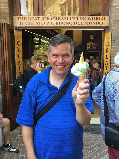 It was a very quick visit to Volterra, which hardly did it justice. All we had time for was to see the overlook, pop into that baptistry, run up and down some cute streets, and grab a gelato. (One must keep one's priorities straight, after all.)