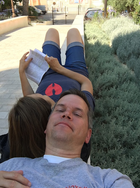 It was again a warm day, and we had no particular plans, so Linette lay down in the shade to read, and I joined her, leaning on the same backpack from the other direction.