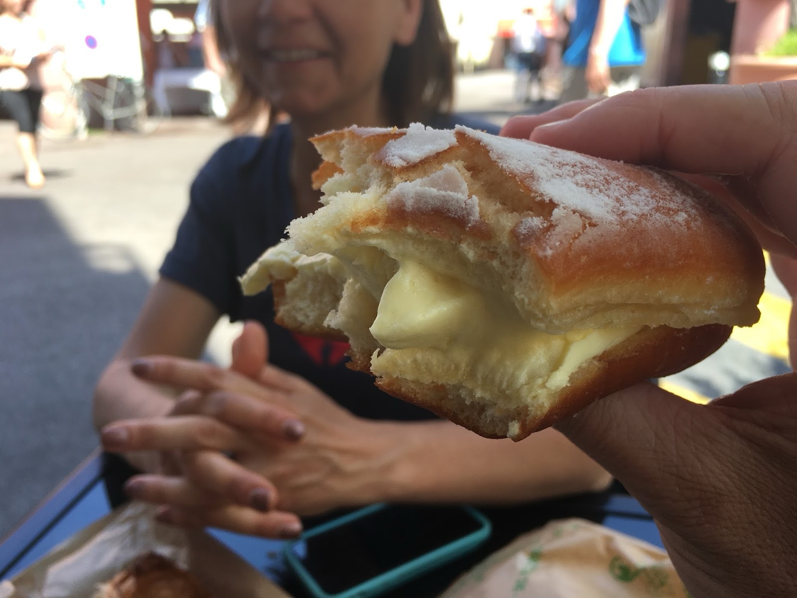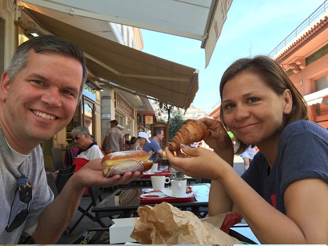 Afterwards we went next door to a cafe (La Tarte Tropézienne) and got an actual French croissant (which was buttery and tastier than ones I had had before), and pretty much the best pastry in the world. It had a thick layer of vanilla creme in the middle, with amazingly soft sweet bread (? pastry? donut-like substance?), ever so lightly glazed, and sprinkled with powdered sugar. Quel magnifique!