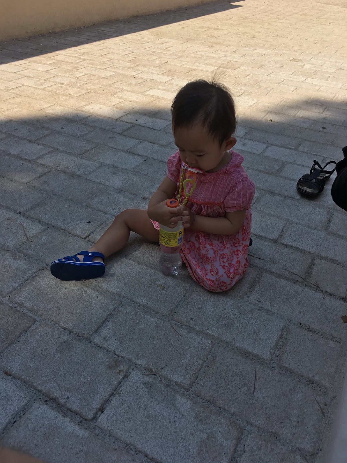 A lady sat in the park where we were and this little girl came over and played with our water bottle. When it was time to go, Linette said, "Si vous plait?" and then, "Merci!" as she retrieved it.