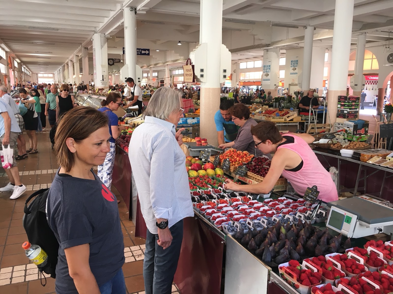 As we wandered through the old part of town, we came across a big covered market that I had heard about (Marché Forville), where they sell all kinds of fruit, pastries, le poisson (hee hee hee haw haw haw), and on and on.