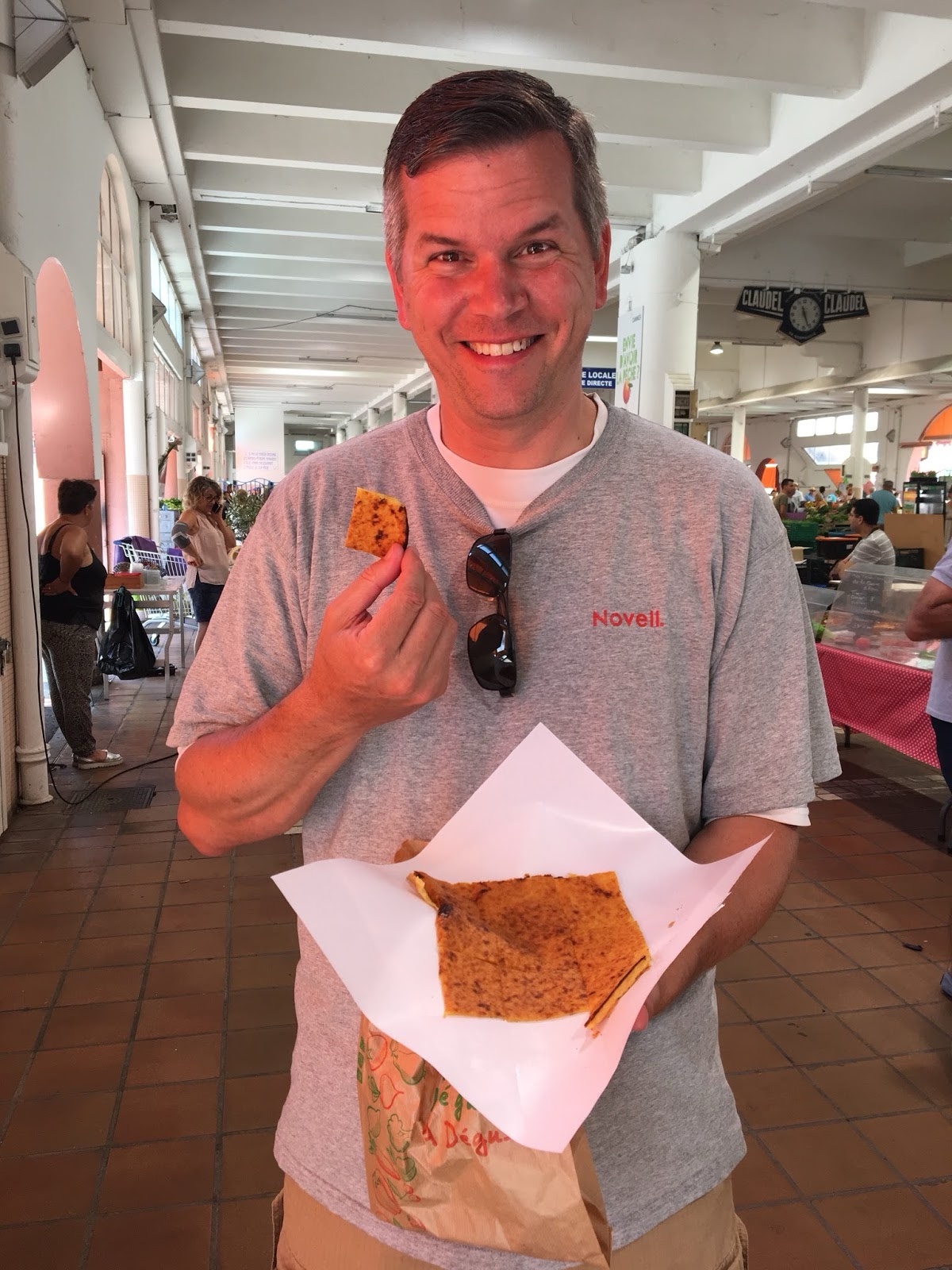 We ate cherries, and I got some sort of crepe made out of chickpeas, which was tasty and filling.