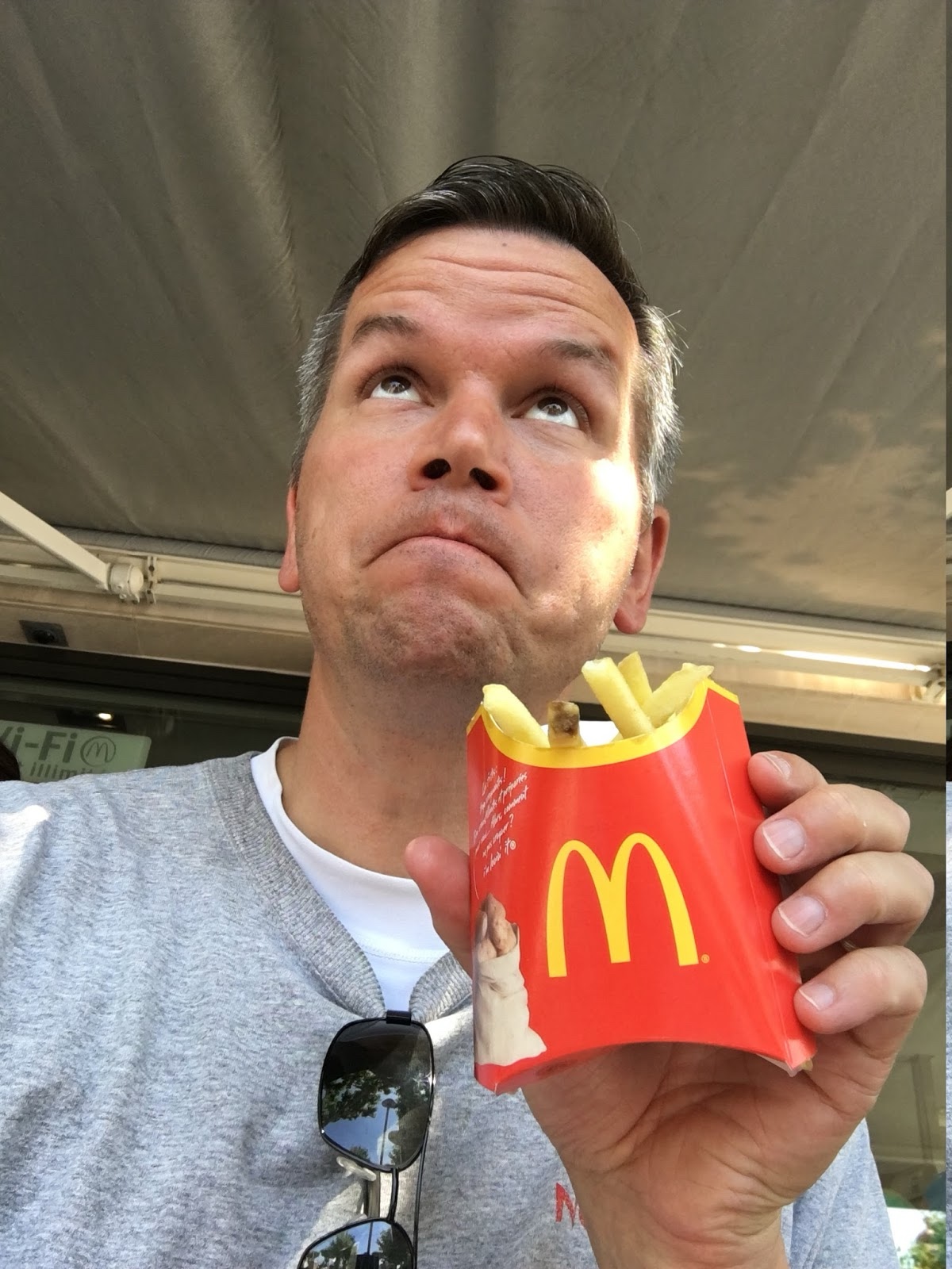 Later we needed a restroom, so we thought we should try McDonald’s. But they said you had to buy something first. But we had just eaten enough, so Linette asked, “What should we buy?” I replied, “Well, obviously, French fries!” They were the same except their “fry sauce” was like mayonnaise with lemon.