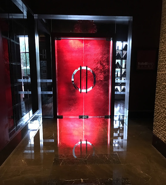 The entrance to The Forbidden City is flanked by flower arrangements, too.