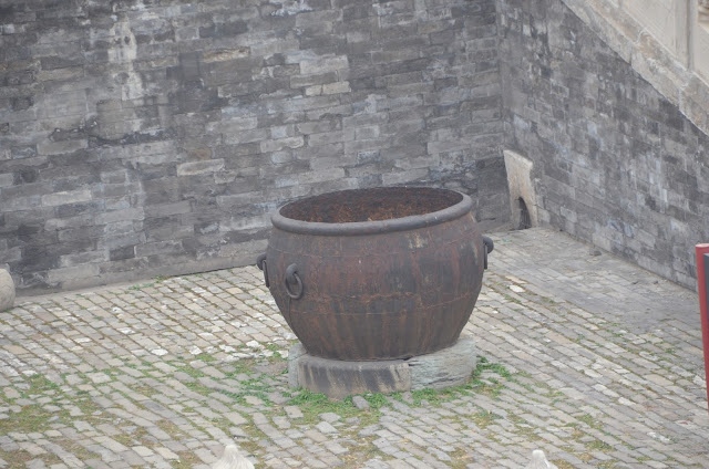 There were vats all around whose purpose was to hold water to use in case of fire. In the winter, the water could freeze, so sometimes they built fires under them. Hopefully none of those ever caught the place on fire, cuz that would be ironic...