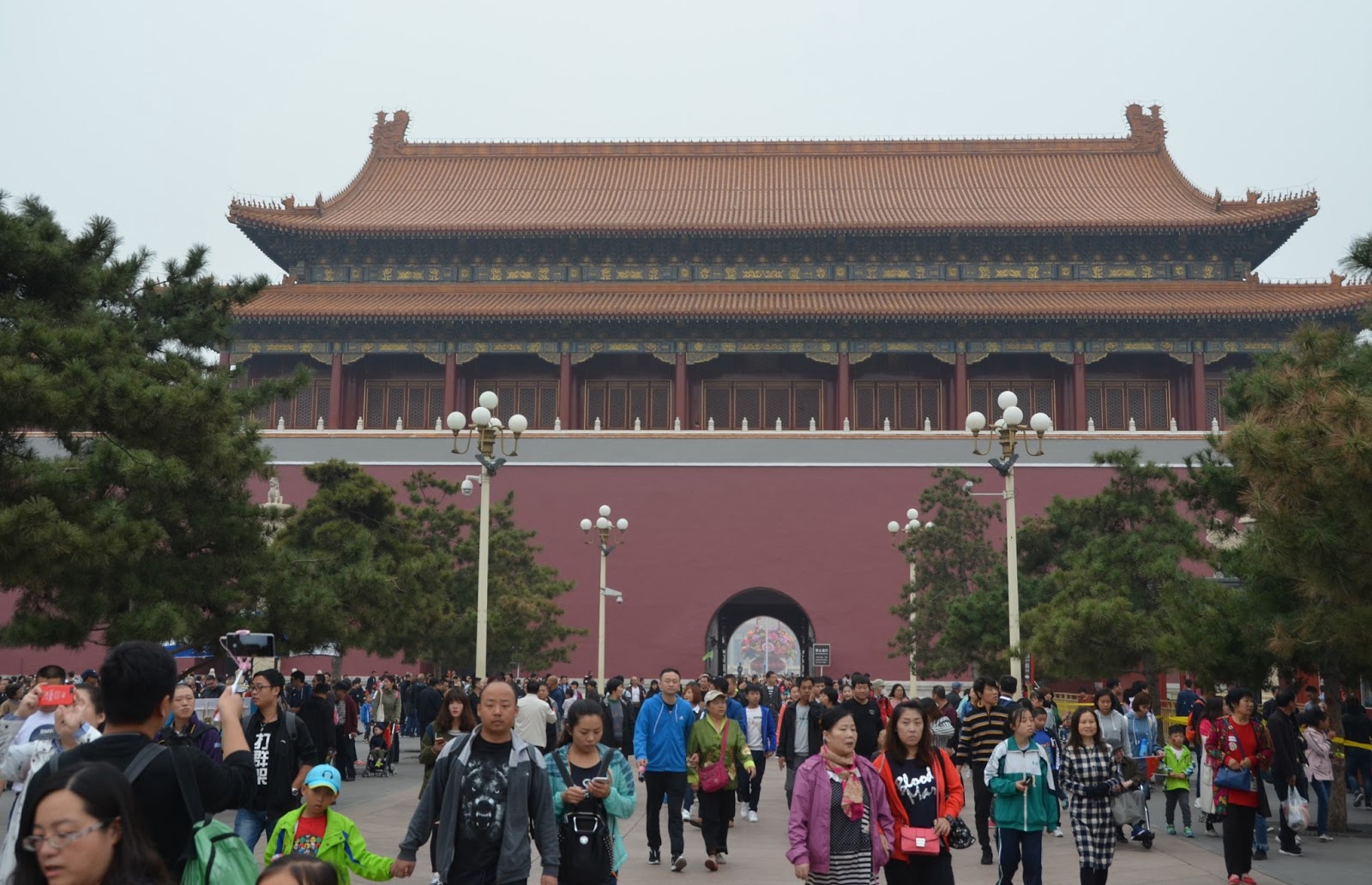 Across the street from the entrance to The Forbidden City is Tiananmen Square.