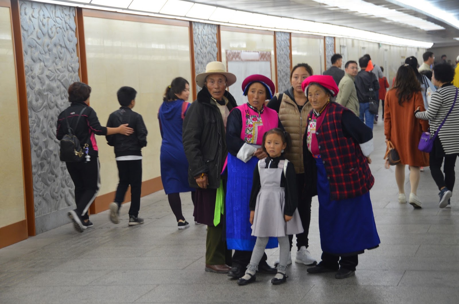 In an underpass near the subway station, we saw this ethnic family, who looks especially concerned and anxious for someone's arrival.