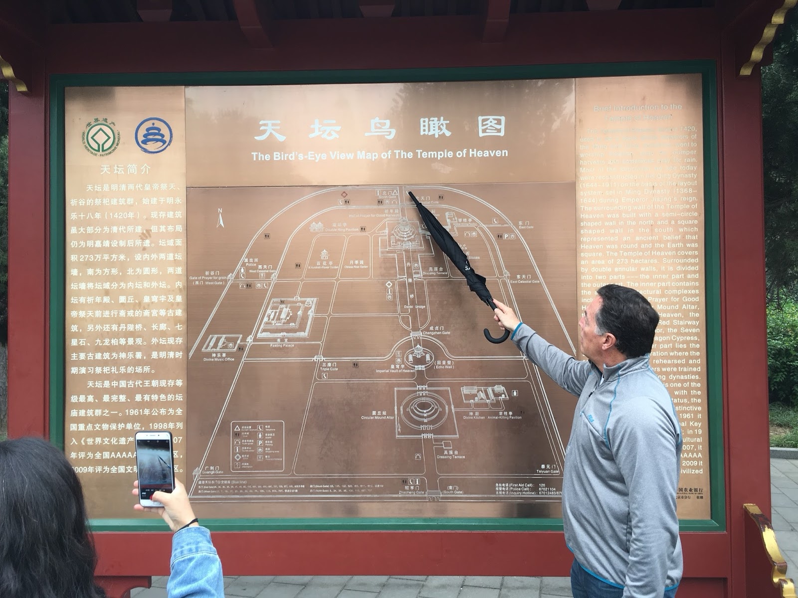 Next, we joined up with Steve Nickle again and visited The Temple of Heaven (天壇, Tiāntán), where the emperor used to go for spiritual activity. It was built during the same years (1406-1420) as The Forbidden City.
