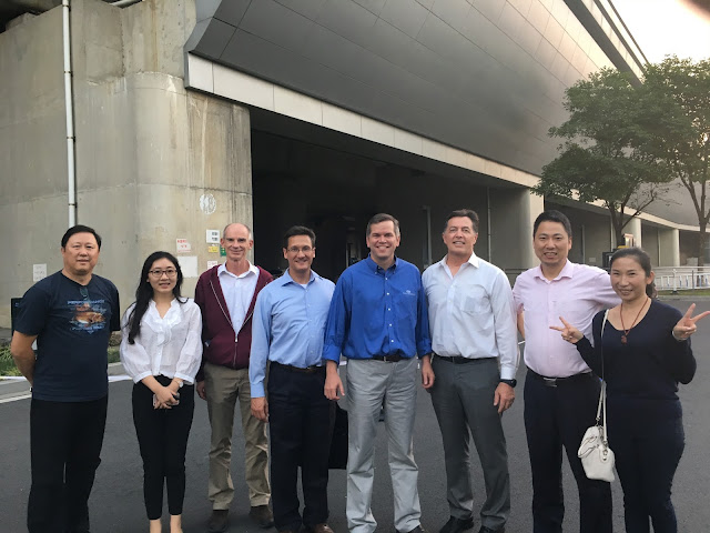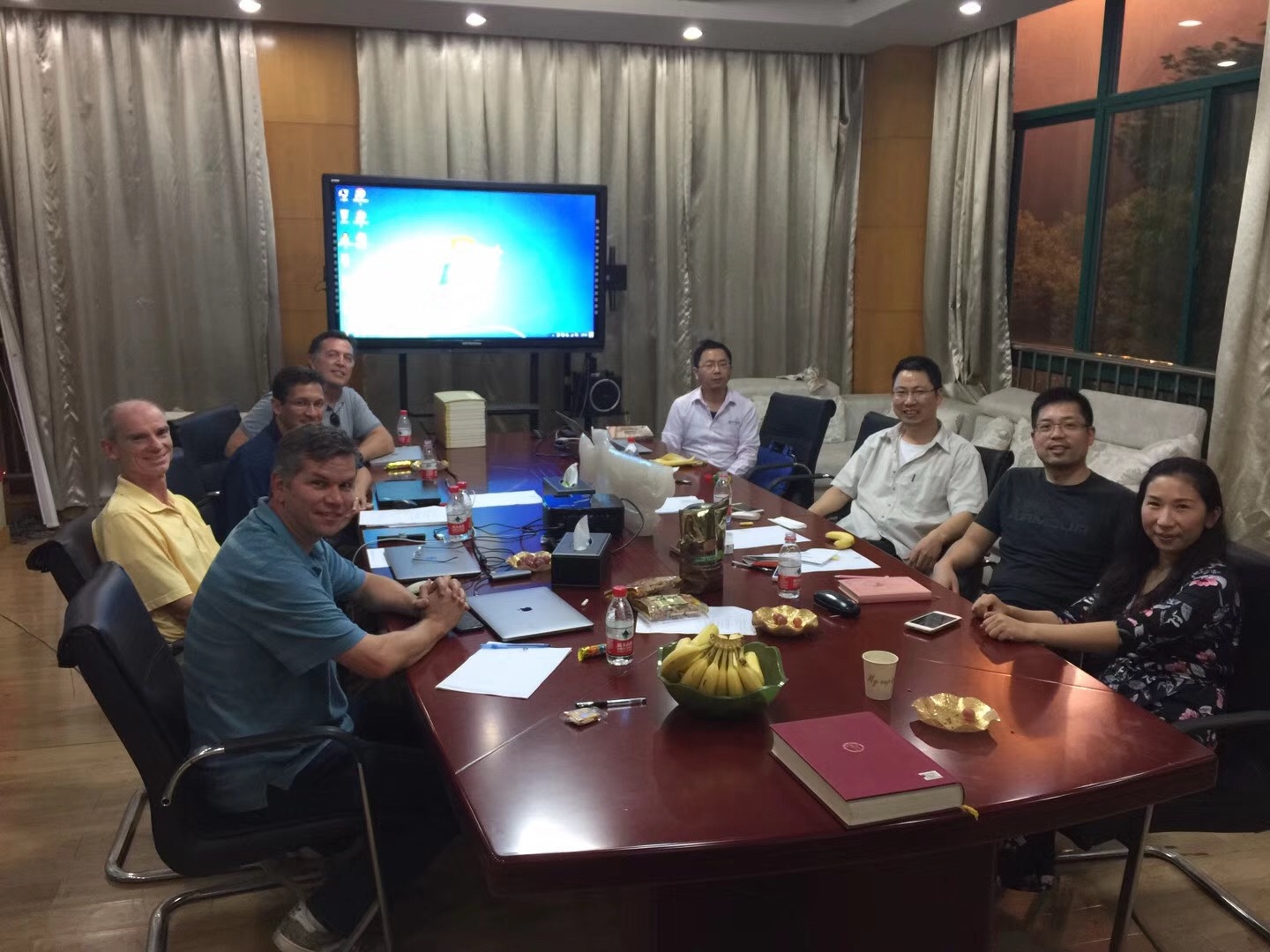 The leaders of the company we were meeting with were there to greet us and were so nice to us! They had wanted to throw us a big welcome dinner but Steve had asked them to let us rest for the evening. But they still gave us rides to the hotel and gave us a bunch of bananas and Asian pears to welcome us.
