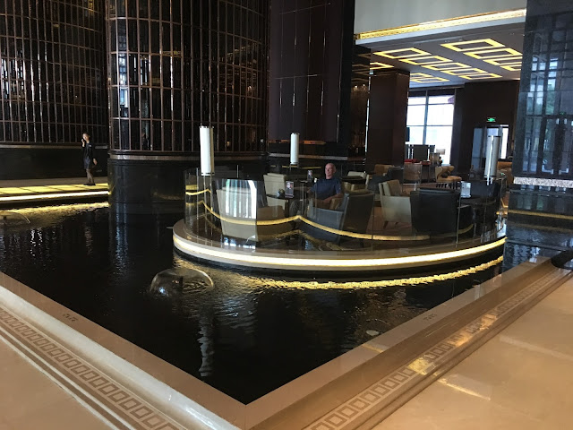 The lobby had a water feature (which was labeled as "water feature") that was an inviting place to hang out.