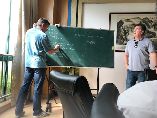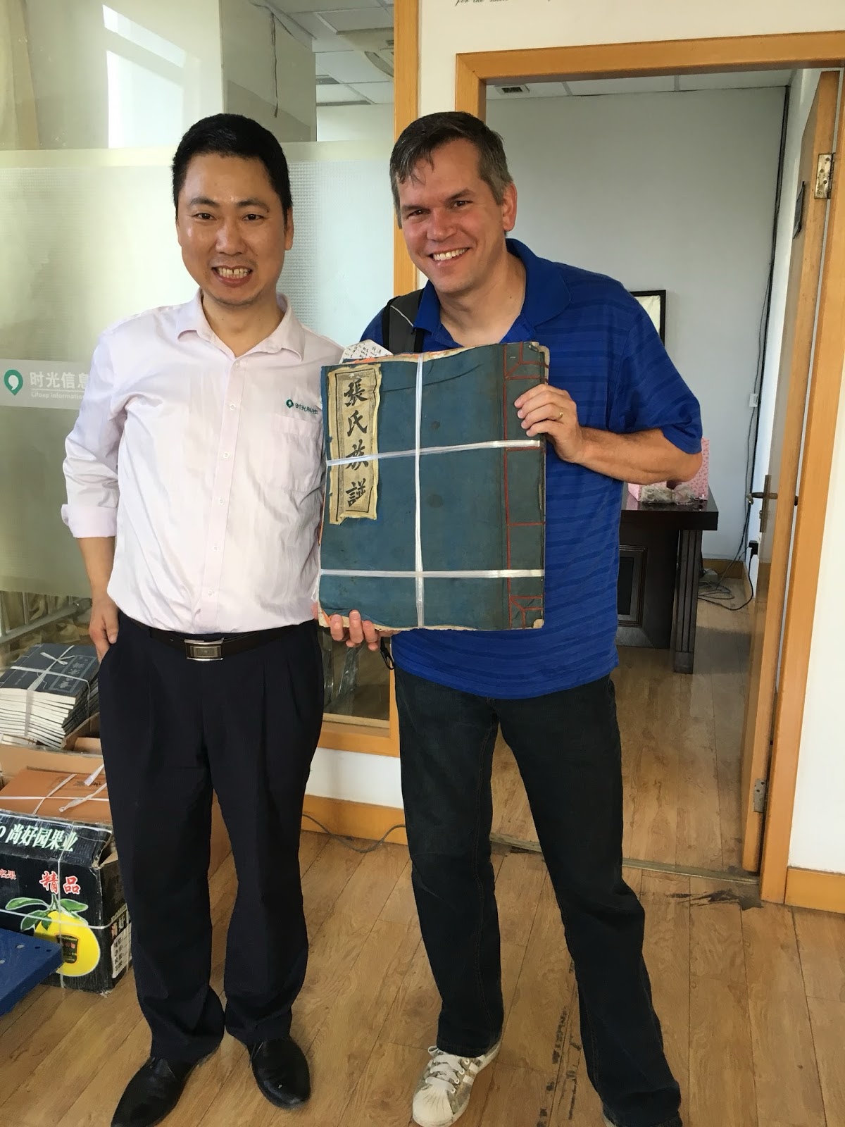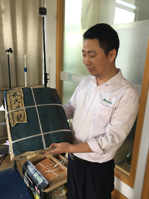 Here the CEO shows us one of the Jiapu, the Chinese family records, which starts with a particular "honored ancestor" and has many generations of descendants.