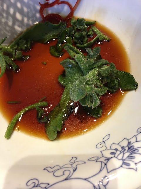 And one of my surprise favorites was "ice grass," which I had never heard of or seen before. It was crispy and juicy like crispy lettuce, and had little ice-like granules on it. It was sweet and tasted good in the sweet salty sauce.