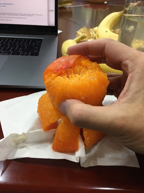 That afternoon we were also served persimmons. I had those on my mission in Korea, too, but have never really seen them in America. They're really juicy, sweet and soft.