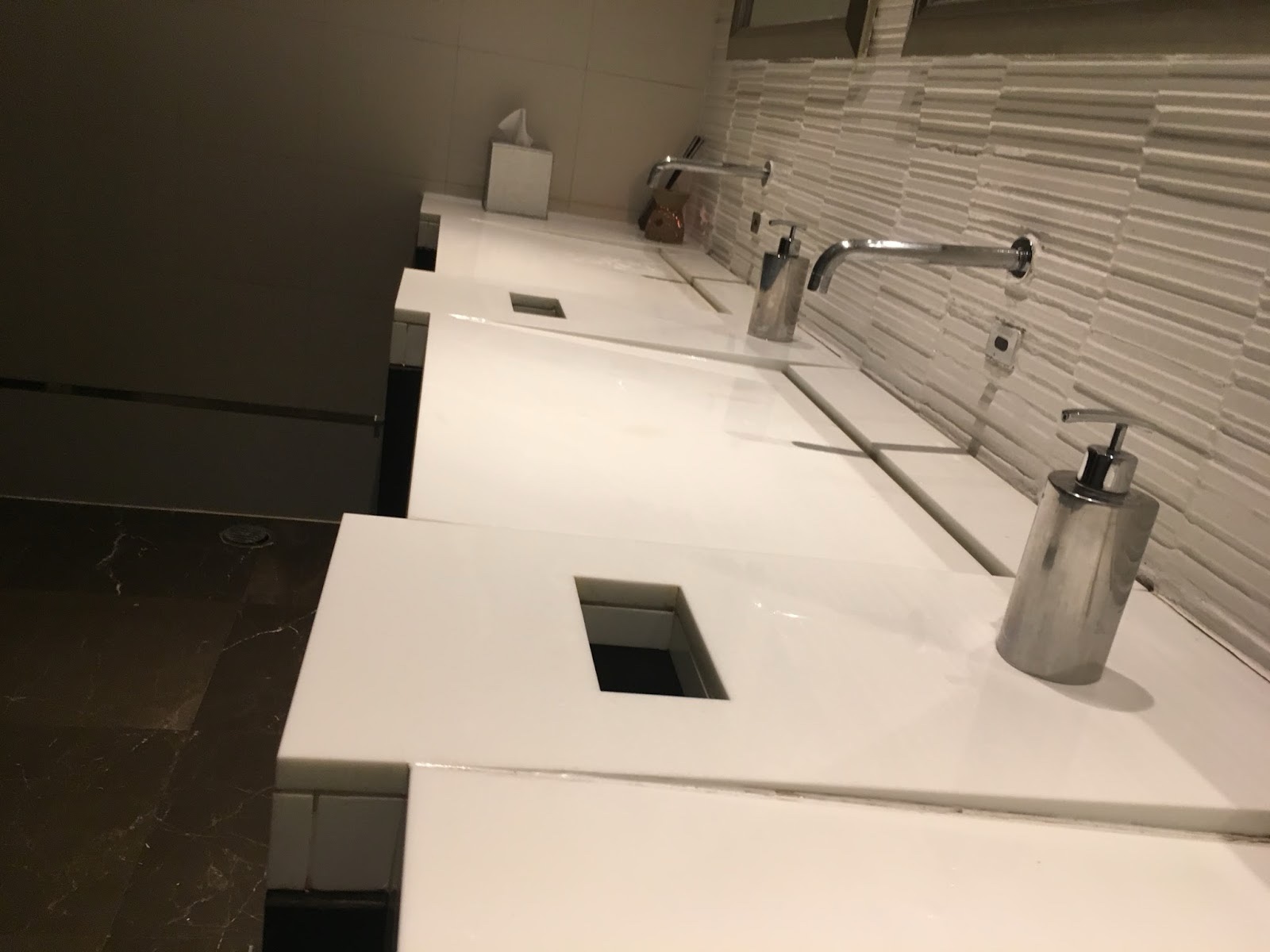 The restroom in the lobby of hotel had sinks that made it look like you were pouring water on the counter! It took a second for me to realize it was ok.
