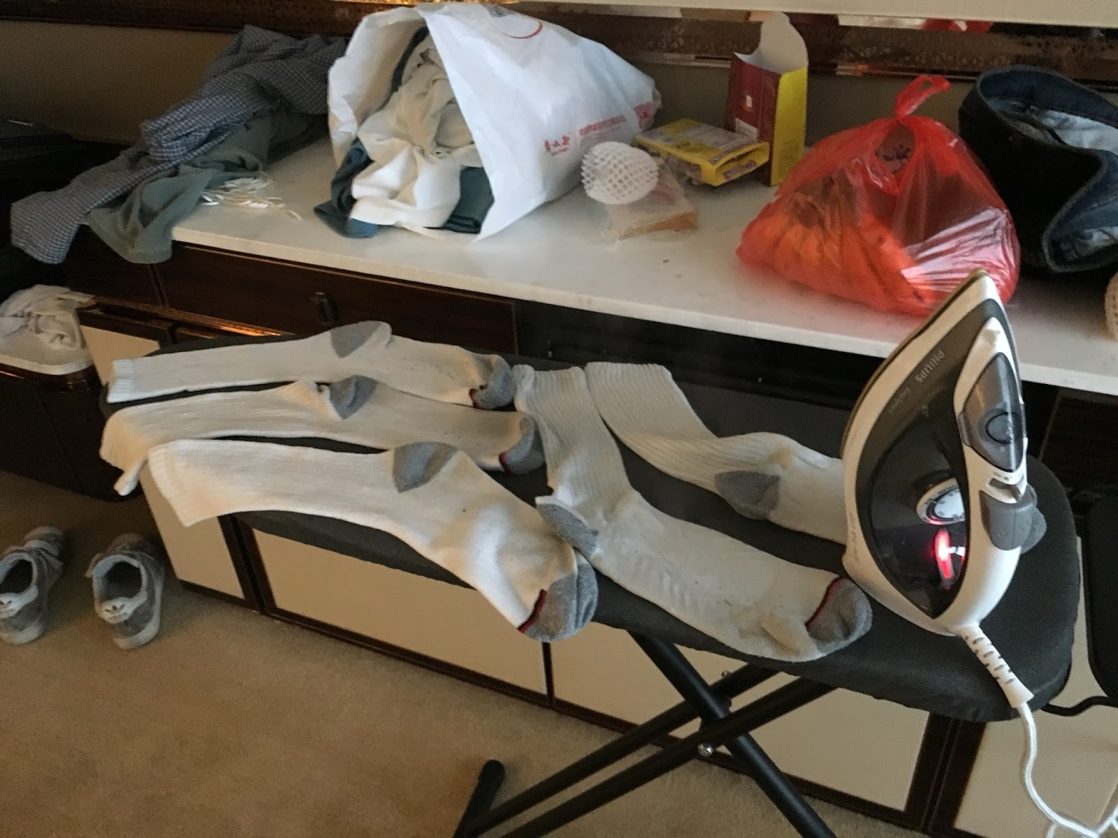I tried doing some laundry that morning, but due to the humidity, my socks weren't even close to drying out by that night, so I ironed them to evaporate most of the water out of them. That seemed to get them dry enough that they were ok by the next day.