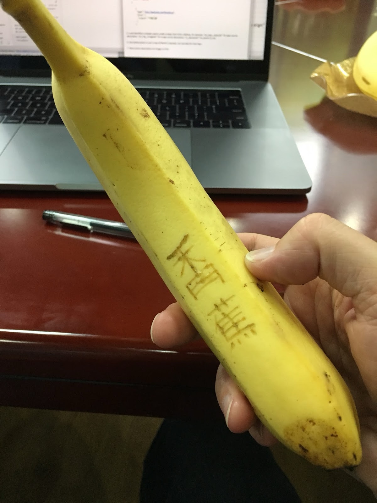 I carved the Chinese word for "banana" into this banana.