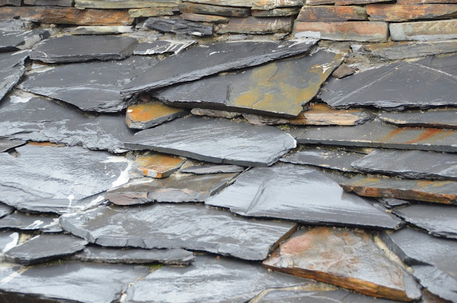 This roof had cool shingles made of overlapping flat stone.
