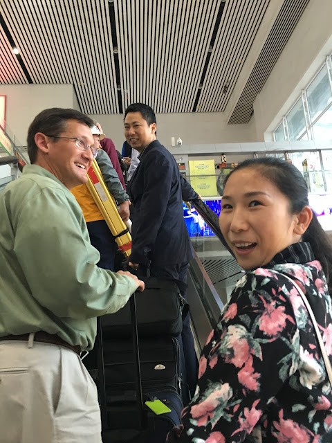 By the time we finished at the mall, we were hurting for time, and traffic wasn't great, so when we got to the train station, one gal ran our passports over to Steve, who was already waiting in line for the tickets, and then we hurried in a panic to get through security and over to our gate.