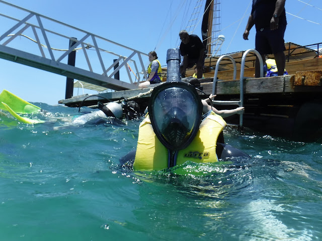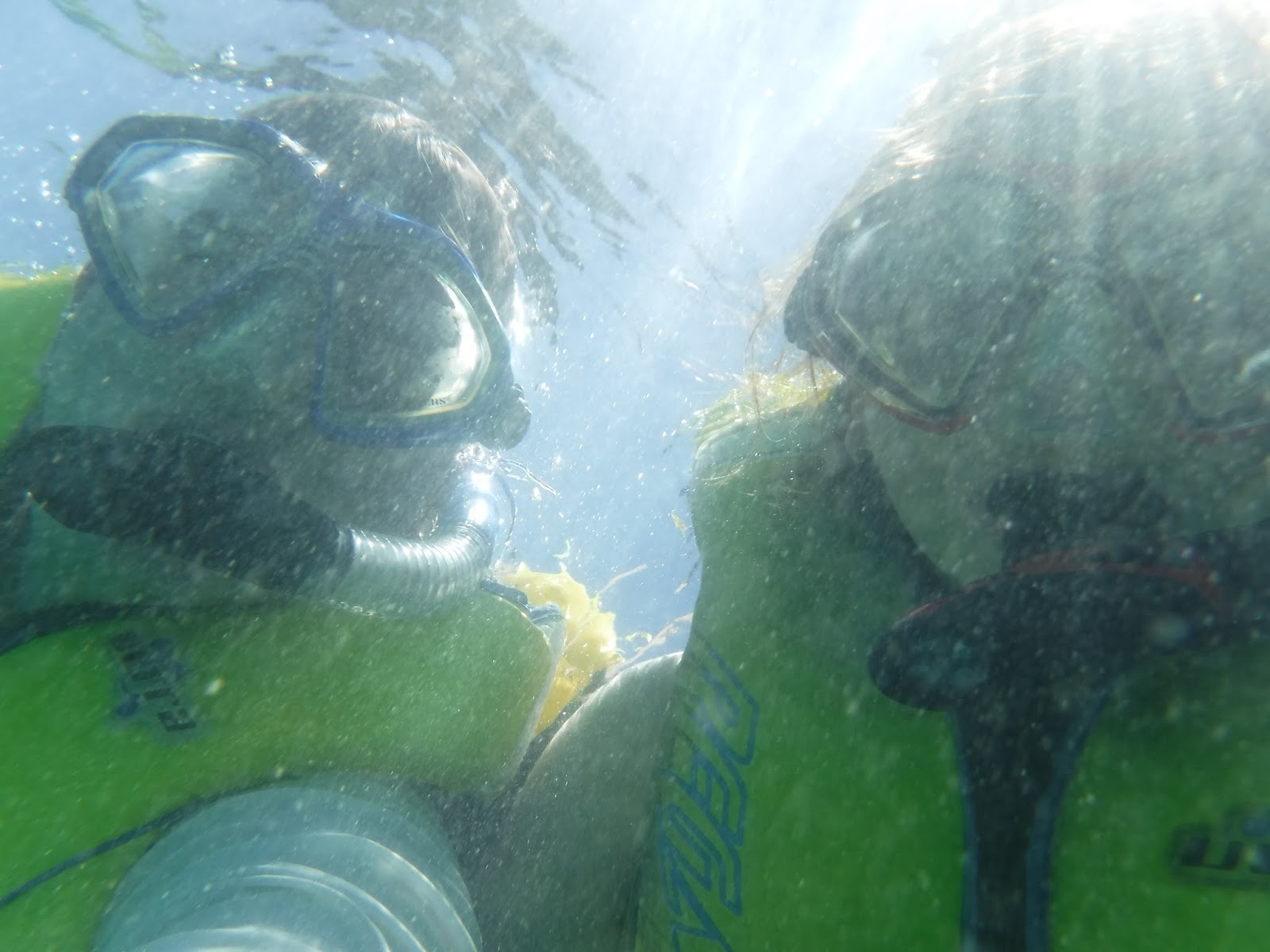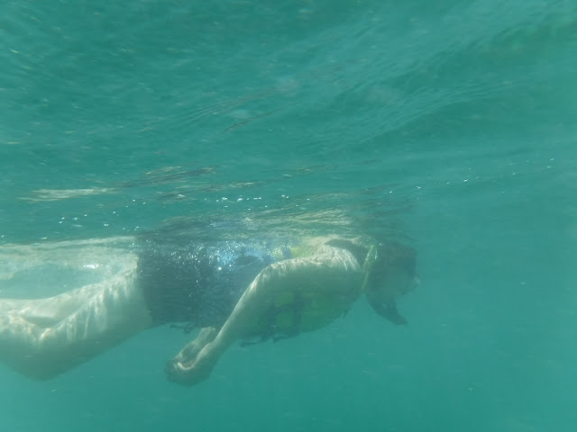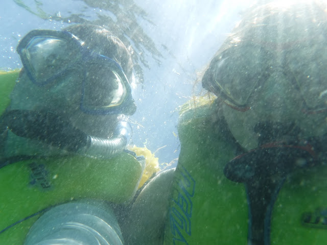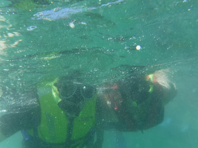 At one point, as I was messing with my life jacket and camera, my snorkel disconnected from my mask and sank about 10 feet to the bottom. Fortunately, a scuba guy was right there, so I asked him to go down and get it for me, which was handy.
