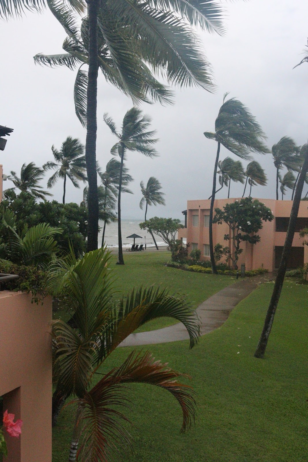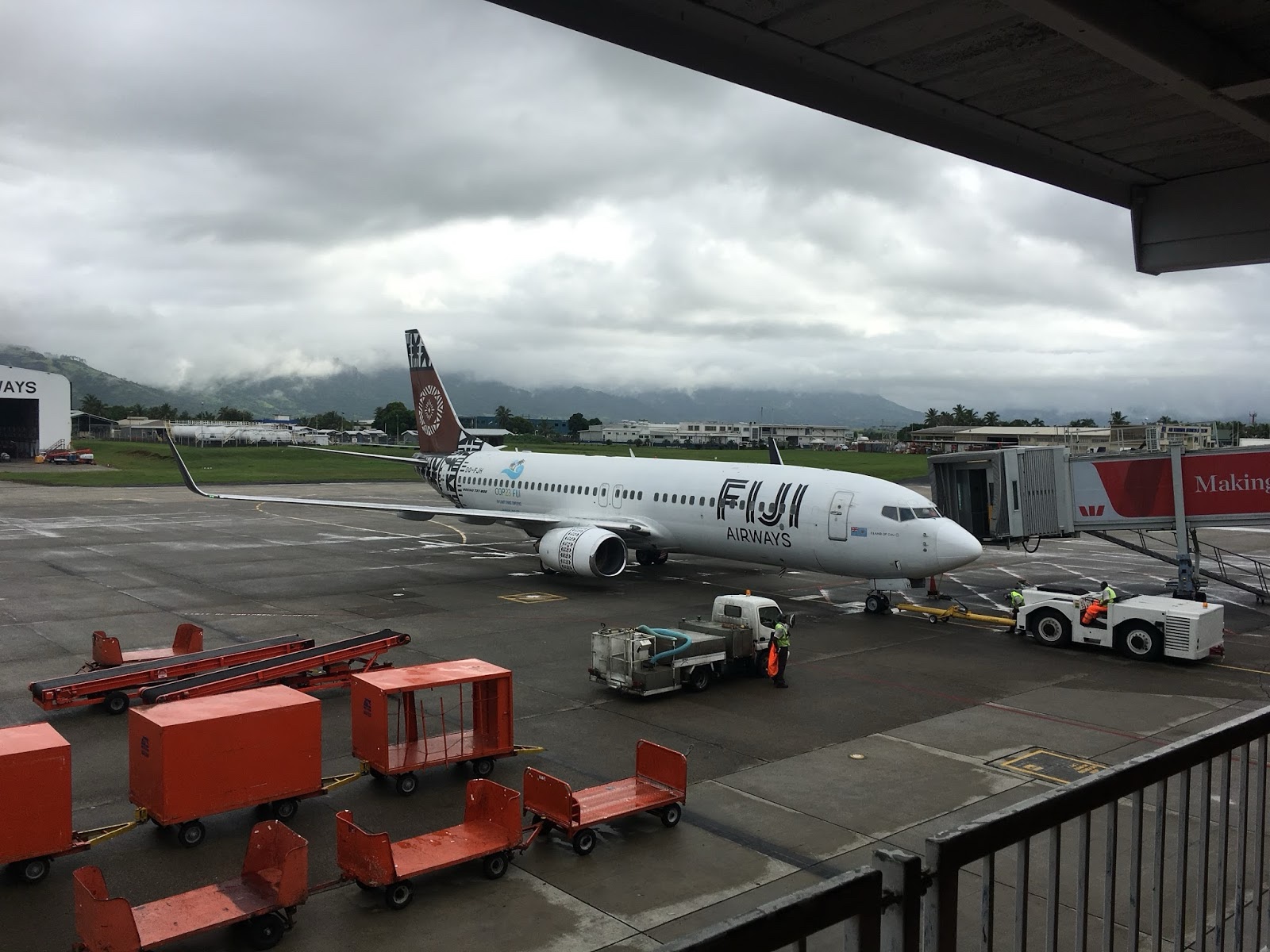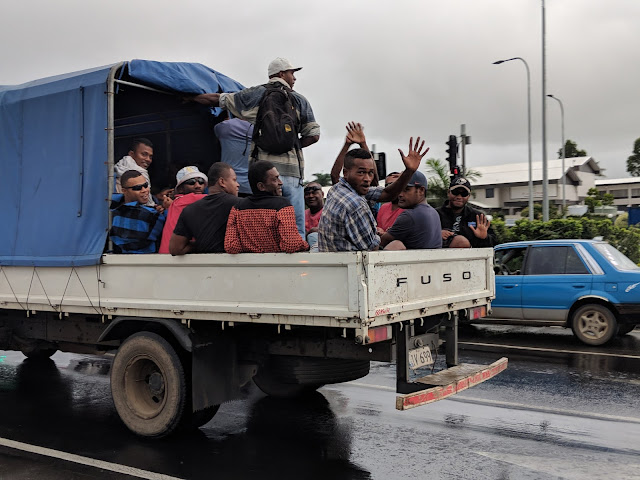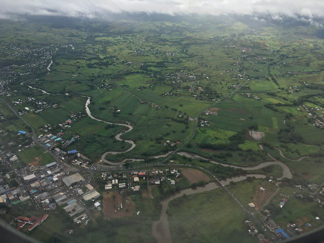 Tuesday morning we awoke early to finish packing, check out, and sneak in a quick breakfast before we had to head to the airport. The weather had turned stormy and it started to rain. Apparently, Cyclone Gita, which had brushed by just before we arrived, had pounded Tonga, and then turned around and would be brushing by Fiji again just after we left, so we really lucked out with the only 2 beautiful days with storms on both sides.