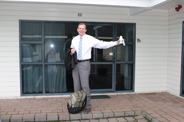 After dinner we drove from Auckland to Hamilton, which was about two hours away. We were running a bit late, so I called the hotel to see if it would be ok to check in a little later than we were supposed to. The guy was amazingly nice and said they'd wait for us. When we got there, he was charming, had a great beard, and handed us each a little bottle of milk as we each checked in.
