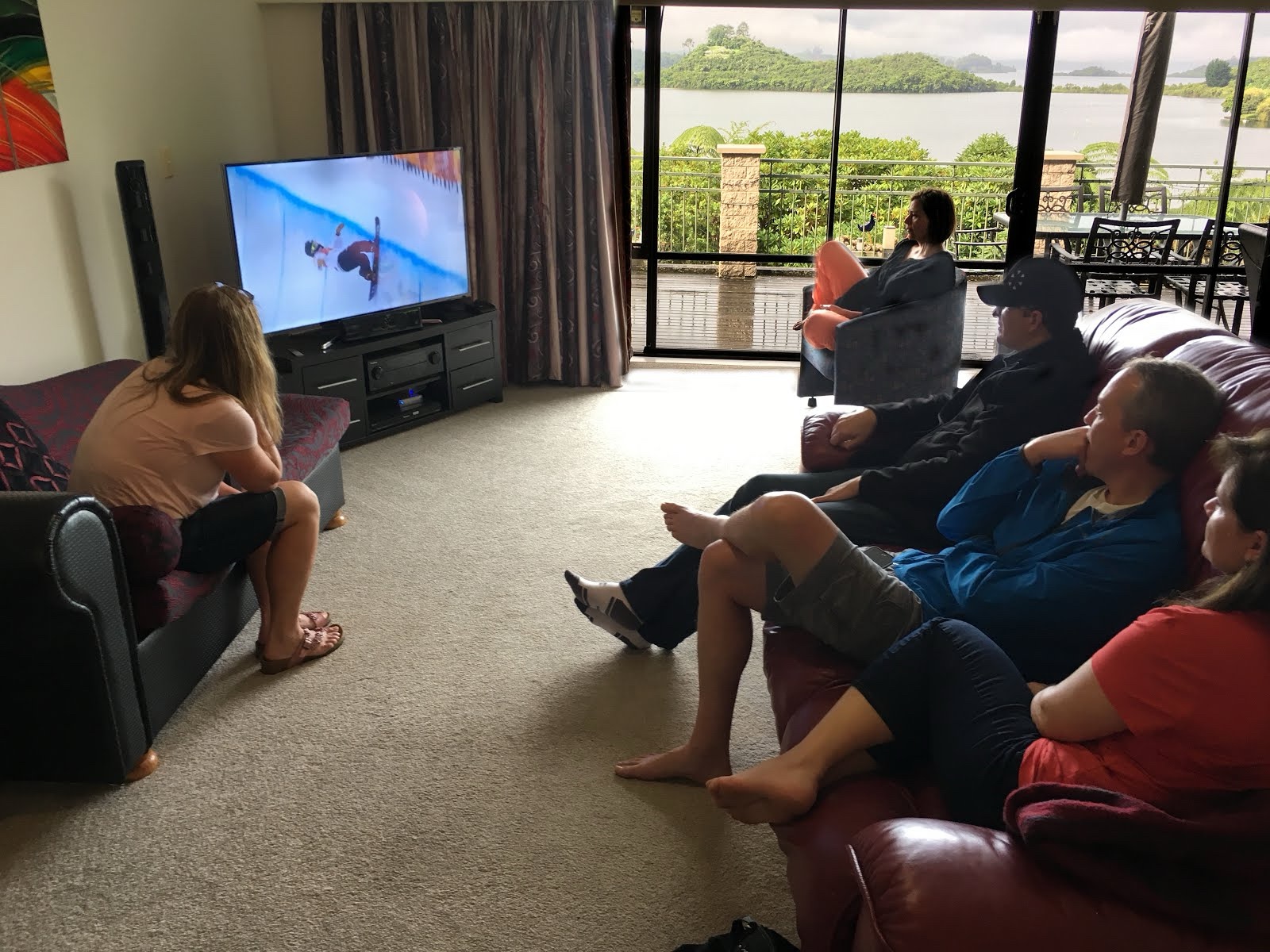 The owner of the house was very kind and showed us how everything worked. He showed us how to turn on the TV, and it just happened to be on the channel with the Winter Olympics on, which were going on in Pyeongchang, Korea. We had been disappointed to be missing the Olympics, and since it was pouring rain outside, we decided to relax (perhaps for the first time on our trip) and sit back and watch the Olympics for a while.