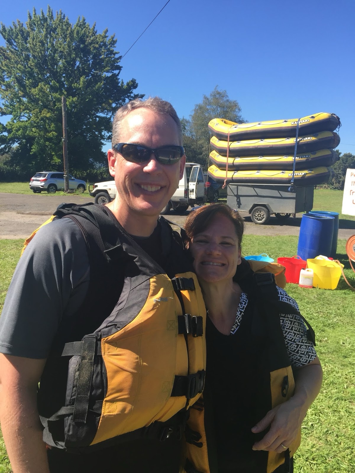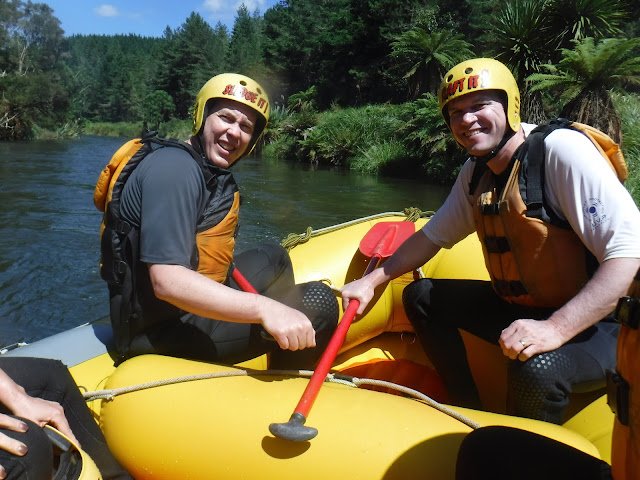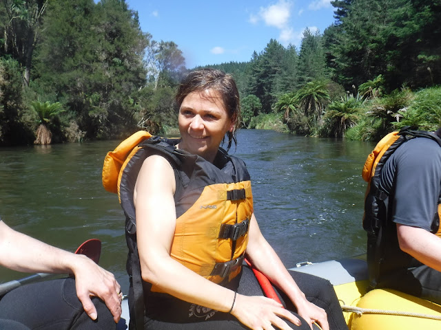 That day we were scheduled to go rafting at a river right near our rental house, but due to the recent rains, the water was too high. So instead the company took us an hour south to another river, which they said was actually a better, longer run anyway. (I believe it was the Rangitaiki River, though they took us in a bus, so I was never quite sure where we were).