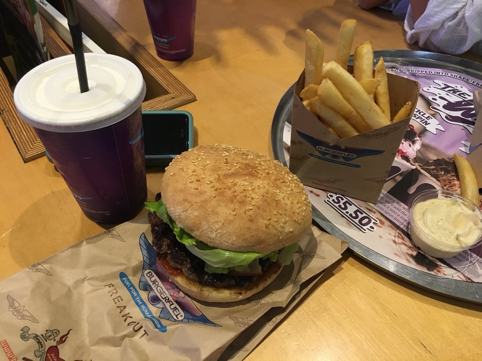 After far too much waffling, we finally ended up eating tasty gourmet burgers and shakes at a place called "Burger Fuel" (whose slogan is "Fuel for the human machine.")