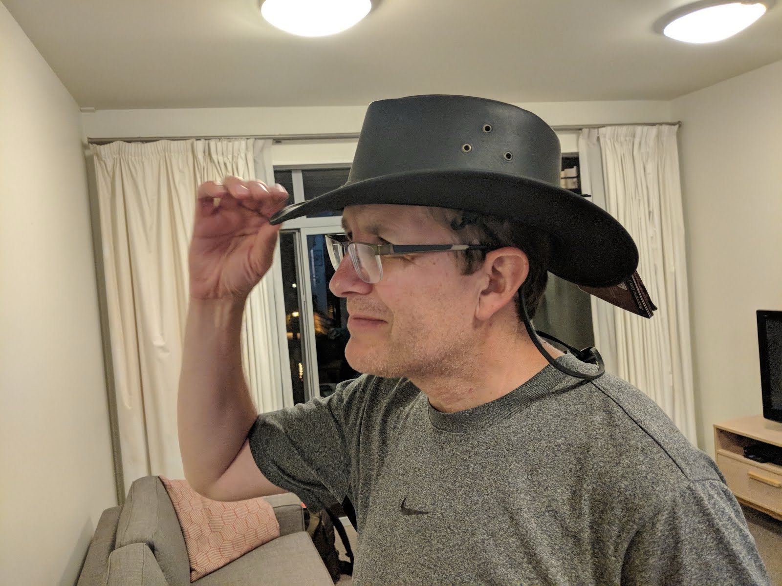 That night we dropped Jon and Shauna at their friends' house for one last visit before their friends left the next day. Here is Jon modeling the hat he bought that day as a souvenir.