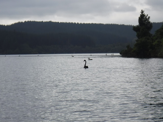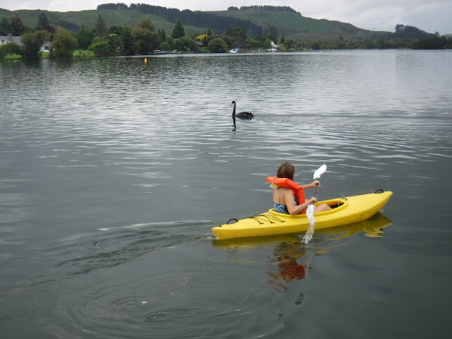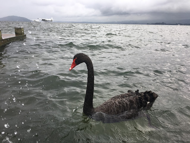 After visiting the town of Rotorua almost every day, we decided to walk the additional 50 feet to the shore to finally see the huge lake there. People were feeding the black swans, and it was fun to see a pontoon plane out in the lake.