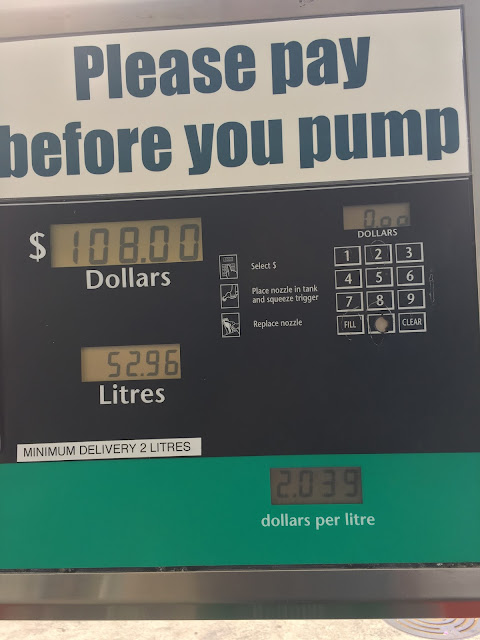 Gas ("Petrol") was $2.03 NZ/litre, or about $5.67 US per gallon.
