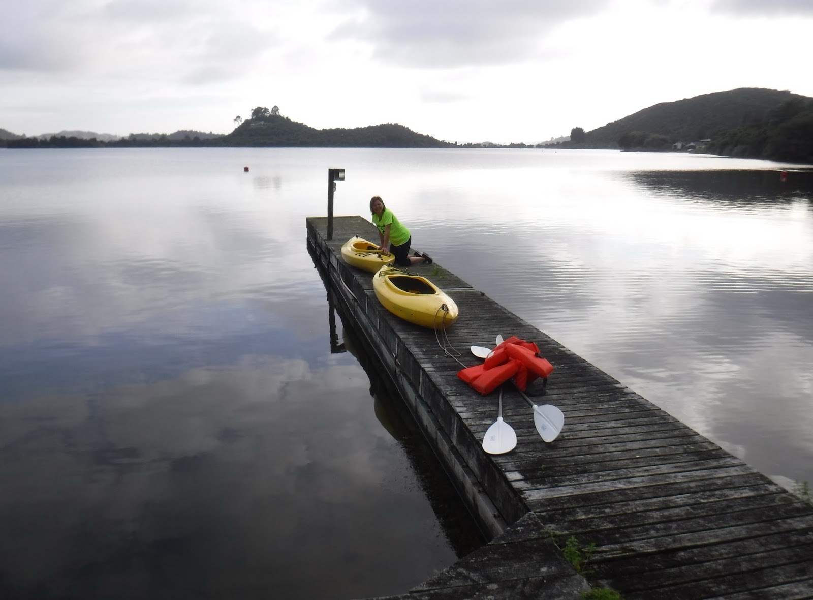 Linette and I dragged the kayaks down to the dock, and then we discovered that there was an ant colony in one of the kayaks. So Linette was kind enough to clear out the ants while I fetched the rest of the gear.