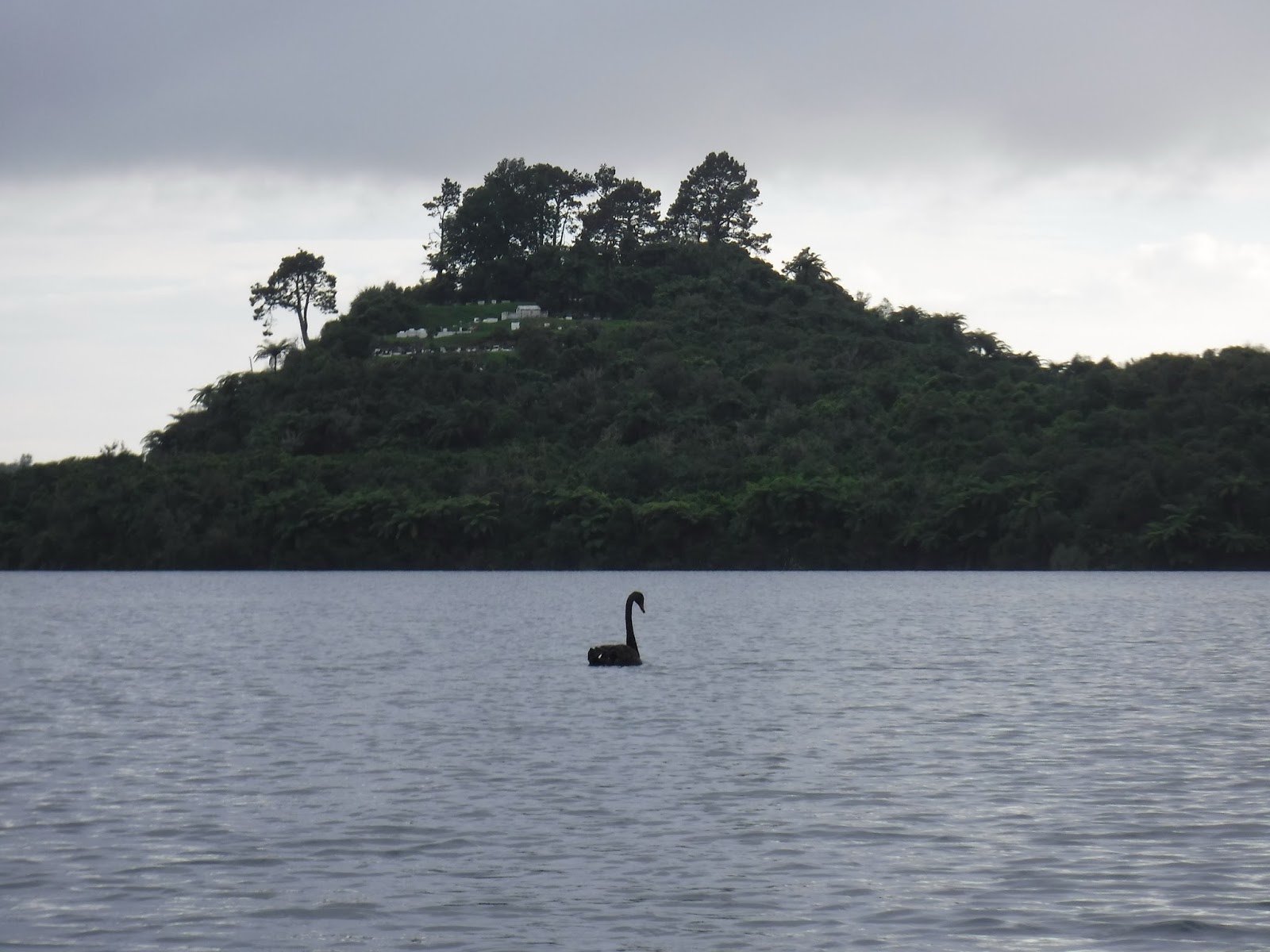 Around the other side of the peninsula that held the cemetery was a large gathering of black swans and other water fowl.