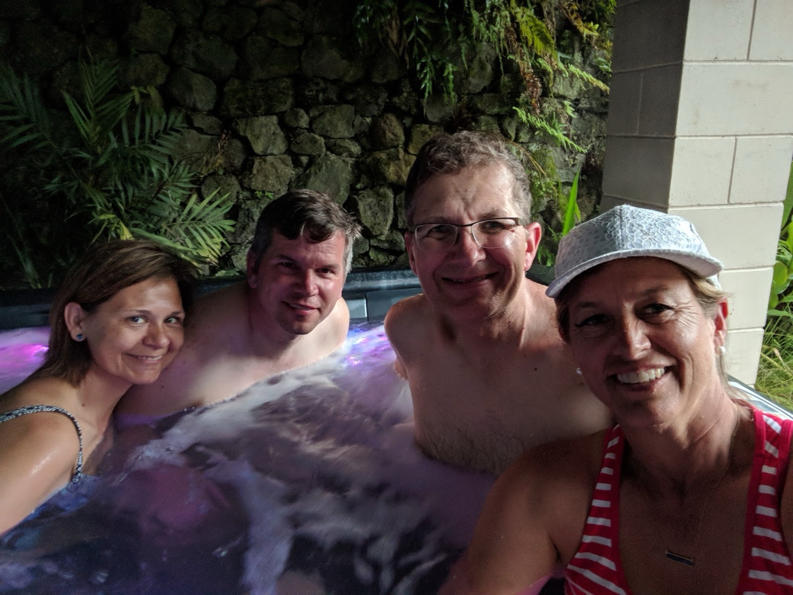 After getting rained on a couple of times that day, it felt good to soak in the hot tub again that night.
