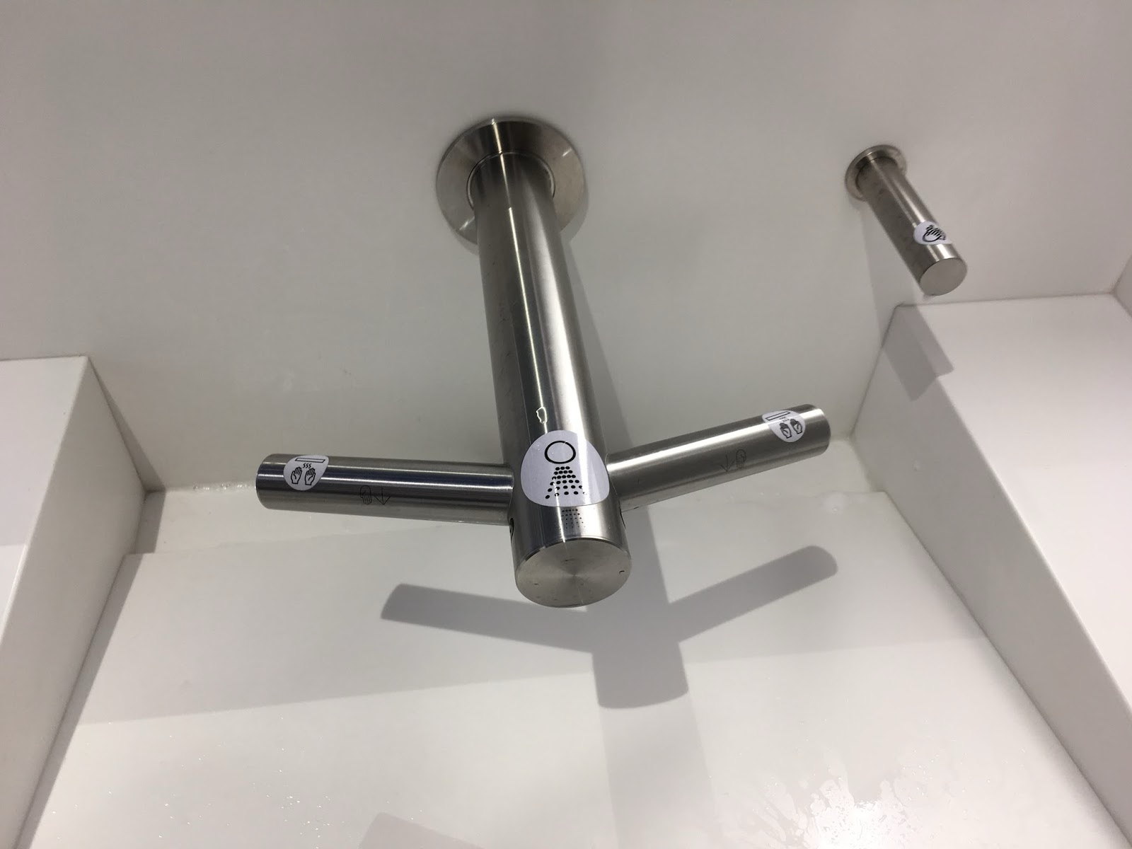 At the airport, we were amazed by the faucet that had water in the middle, soap over on the right, and then both "handles" shot out air to dry your hands off. Fancy.