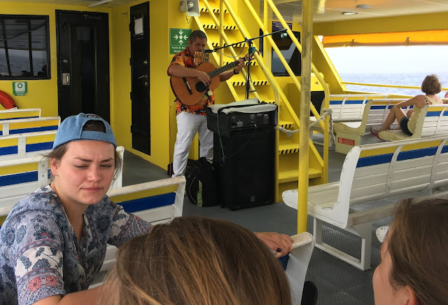 A guy played the guitar and sang and played a flute on the ferry. He played Cielito Lindo along with some English songs.
