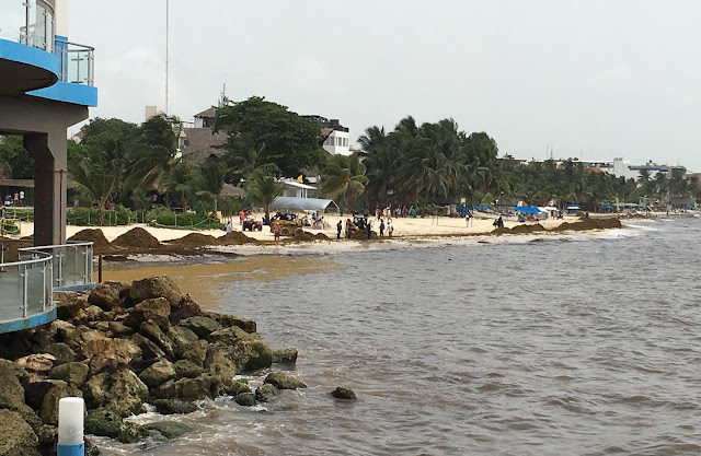 However, our taxi driver told us that the entire coastline from Cancun and on south was being bombarded with seaweed washing in from the ocean. Here you can see piles that have been scooped up by a bulldozer, and the water is still brown and gross. It sounds like they need a hurricane or something to clear it out.