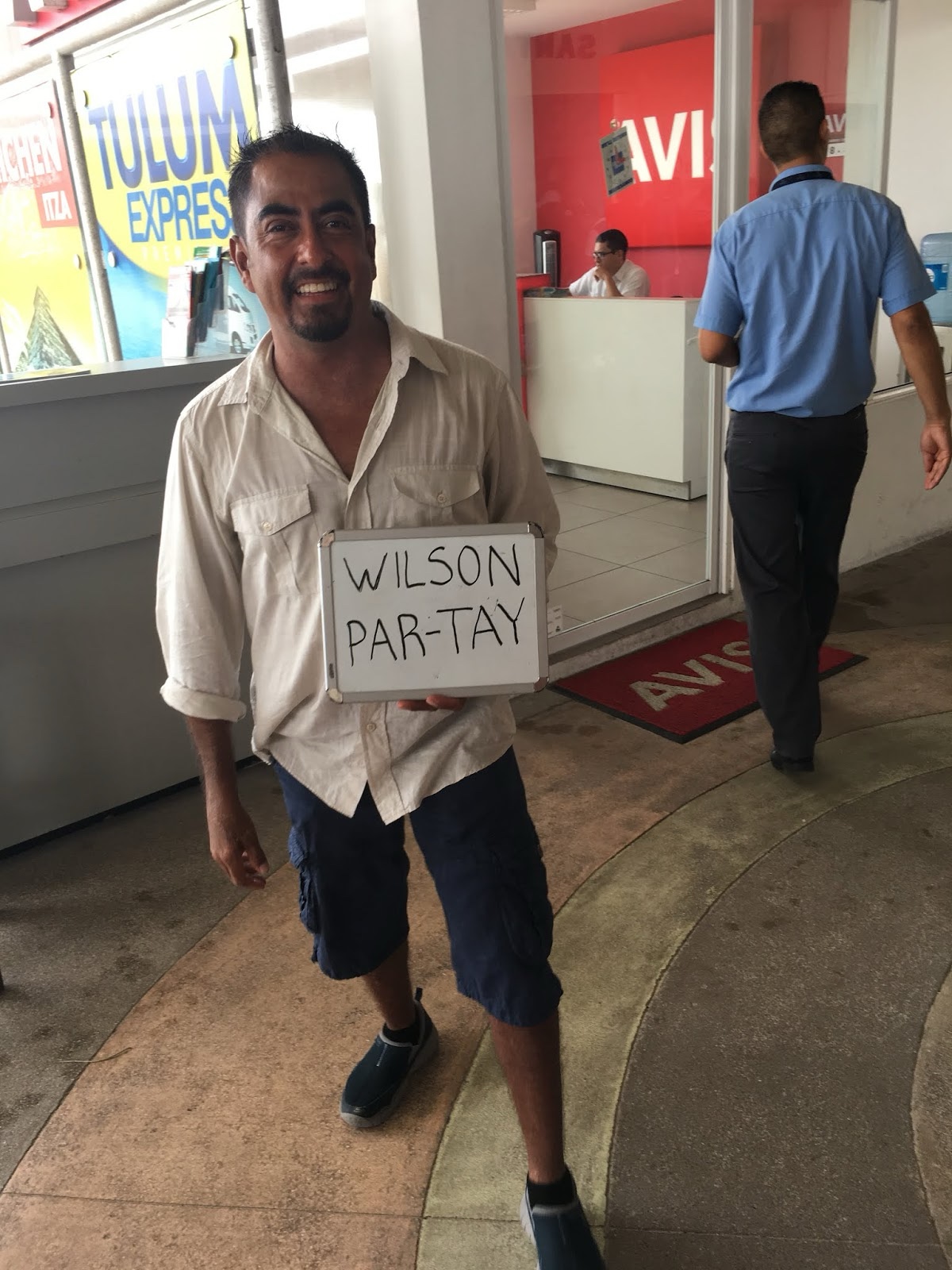 César our driver met us with an appropriate sign. (I asked him to spell it that way. He didn't actually know what it meant).