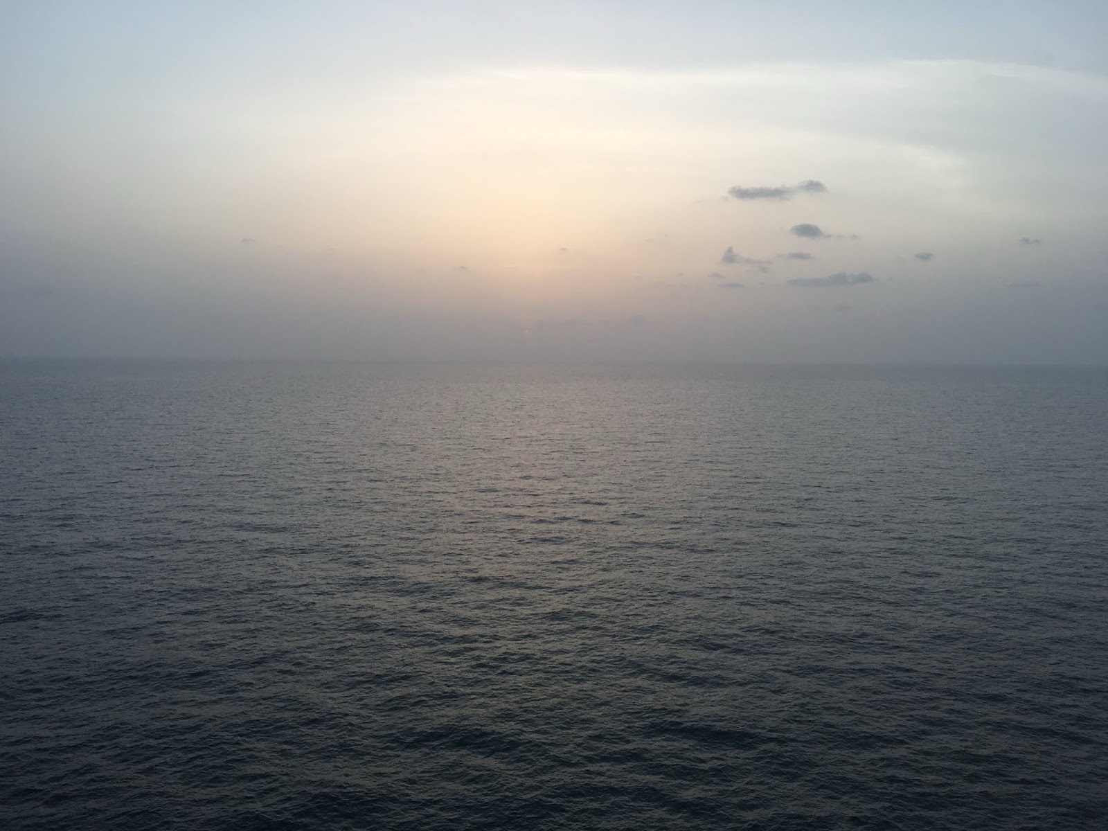 I hadn't seen a sunrise (due to laziness) nor sunset (perhaps because we were always at dinner then) all week long, so on our last evening at sea, I vowed to watch the sun set.