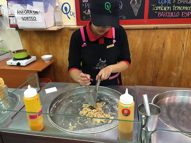 My go-to answer was of course "ice cream!" This place pours your ice cream mix onto a frozen pan, and then scrapes it up and mixes it in with your Oreos or whatever, and puts it in a waffle cone for you. Finally, some excellent ice cream in Peru!