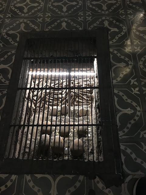 The cathedral also has catacombs underneath it, where hundreds of people have been buried. Some of the bones can be seen through a grate in the floor from the main chapel.