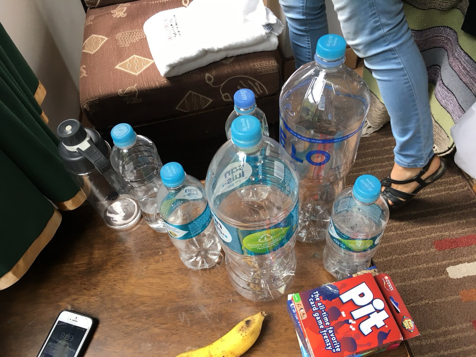 As we packed up, I noticed a plethora of water bottles. Getting enough to drink was a constant challenge, and we were always having to shop for more bottled water.
