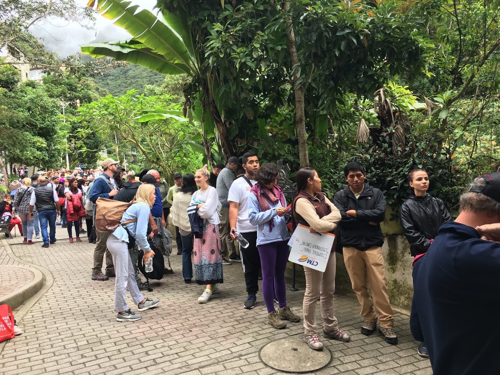 We looked out our window and were a bit surprised to see a line snaking up to our hotel and beyond. It turned out that it was the line for the bus to Machu Picchu, and it extended 6 blocks (about 300m) from the bus station. Apparently a big boulder had rolled into the roadway overnight, and the busses couldn't get past. Dang. I would probably have made the hike at that point.