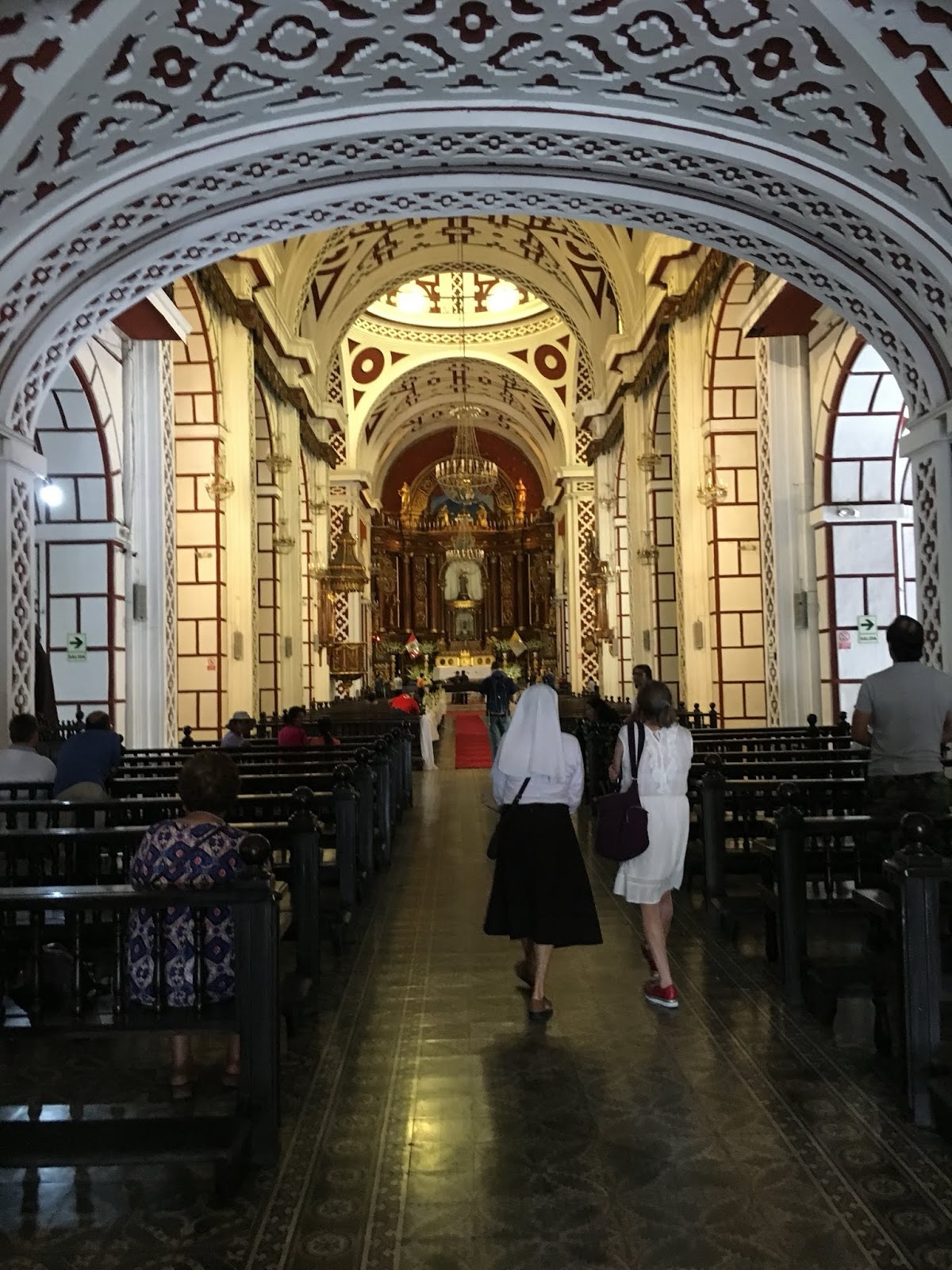 Pizarro founded Lima in 1535. Cusco was nice and all, but it was clear up in the mountains and they needed a main port to get things going. The Cathedral of Lima was built starting that same year (and completed in 1649). After lunch we went inside to see the cathedral.