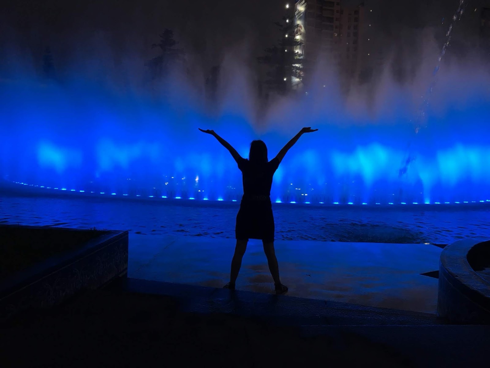 The "Magic Fountain" is the largest single fountain there and with the background lights, it was fun to take cool silhouette pictures against it.