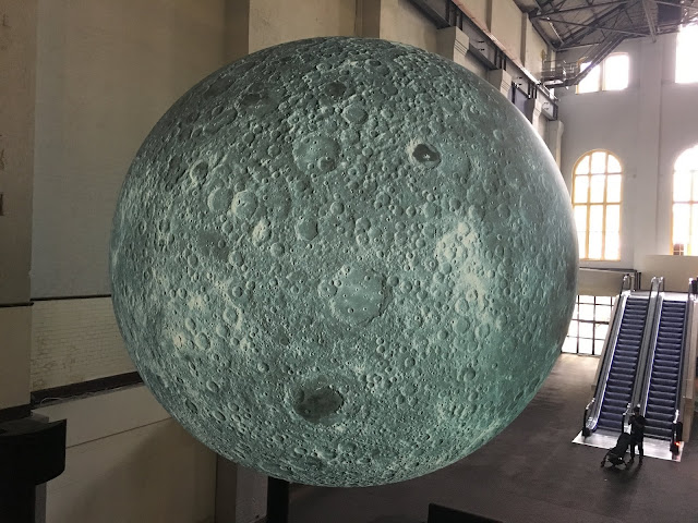 One morning I stopped in at the science museum, and the coolest thing there was this huge model of the moon (see the people below it).