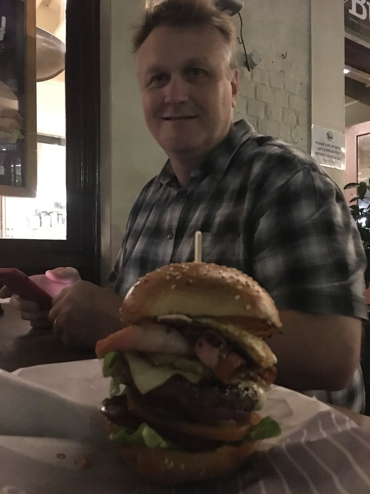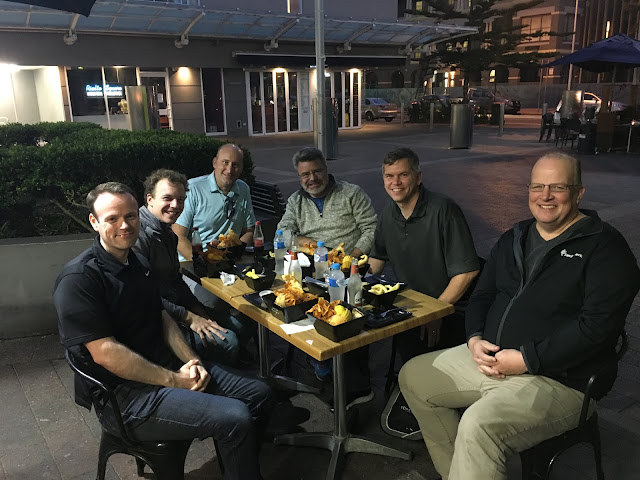 Tim Stokes joined us again that evening, and took us to a place called Ribs & Burgers at The Rocks (an old historic part of town at the base of the Harbor Bridge). He introduced us to the "Aussie Burger", which includes beet root, pineapple and a fried egg, among other things.