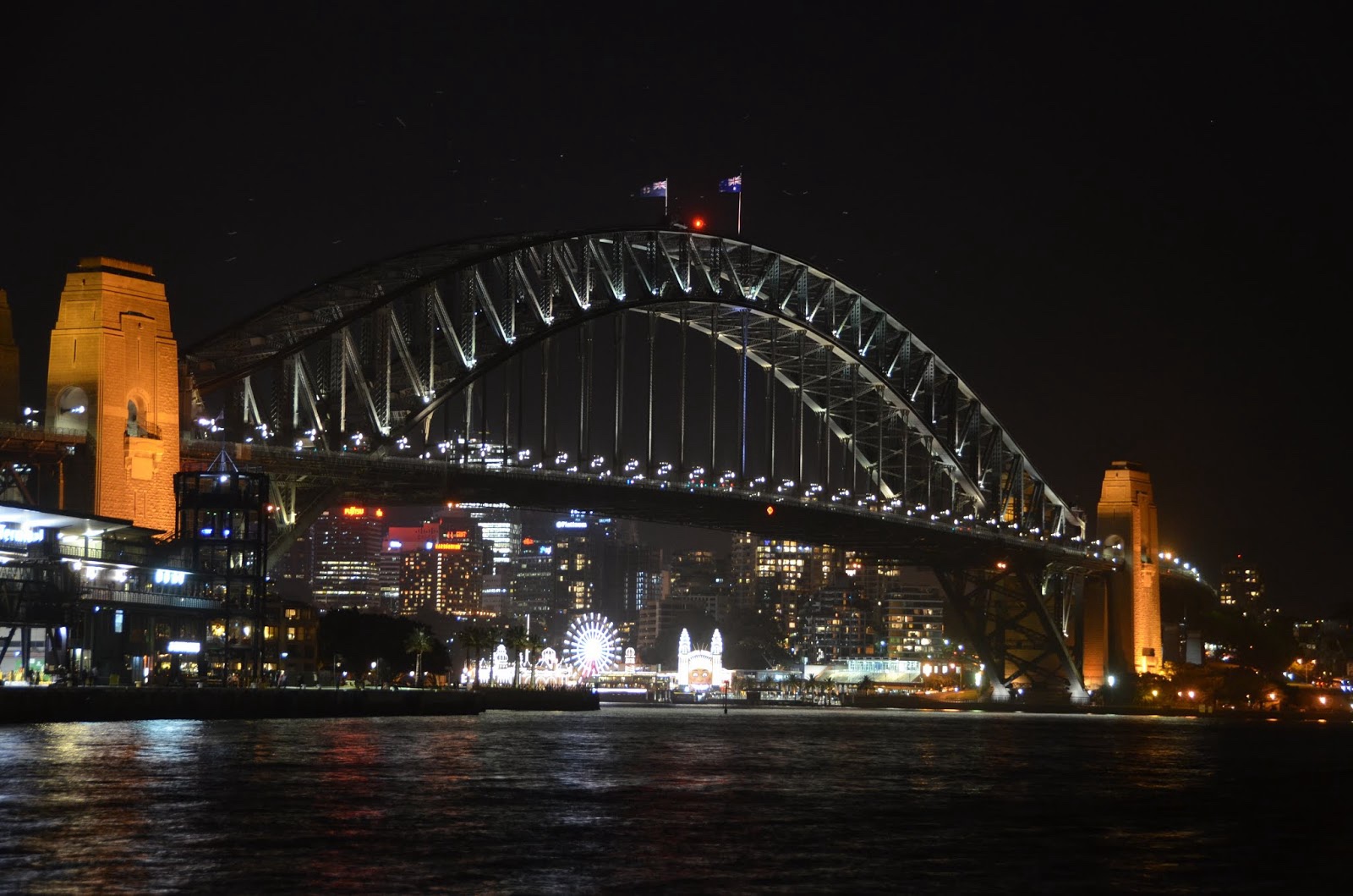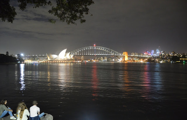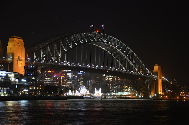 There was a "light the city" night going on at Mrs. Macquarie's Point that night, and as we went under the Harbor Bridge, the spotlights beyond the Opera House made it look like, "Tuh-Duh!!!"