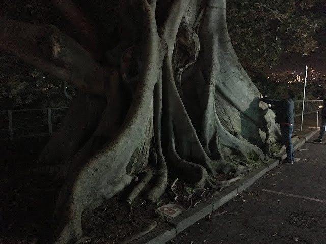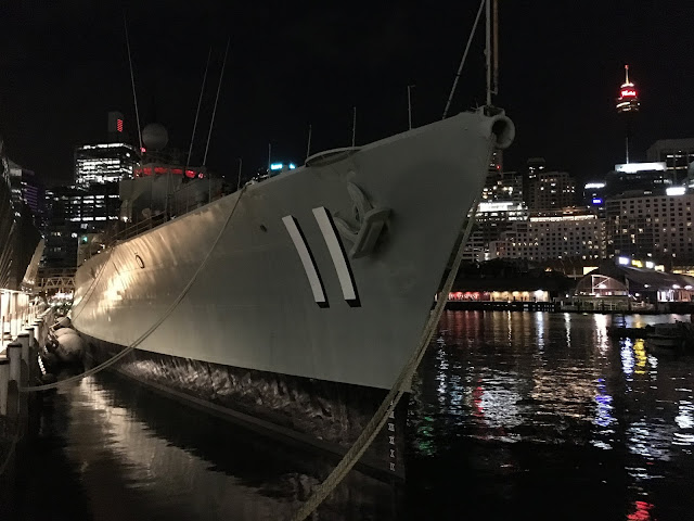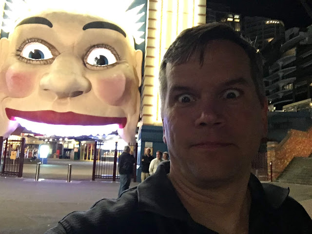 That evening, Steven and I walked across town to go see the "light the city" stuff. But we were blocked by a locked gate. A lady told us to go up by the Opera House to get in, but that was locked, too. Another guy told us we had to walk all the way around, which was going to be a couple of miles, and my feet and back had had it, so we got an Uber for $10 Australian (=$6.67 US), and it was totally worth it. That was my first ever Uber ride.
